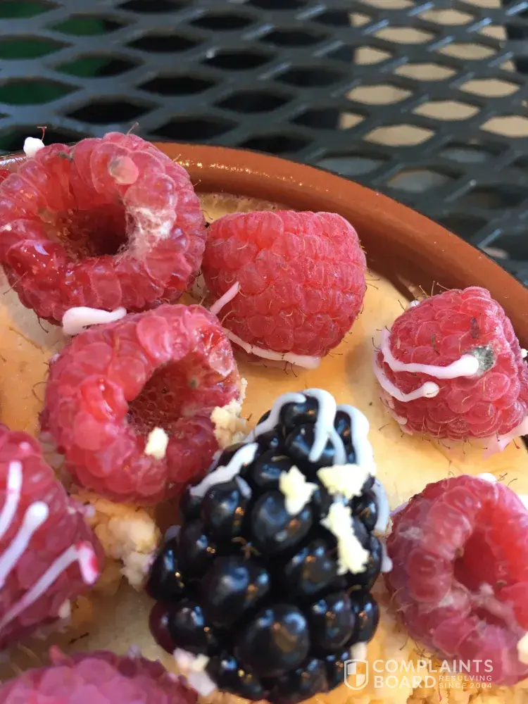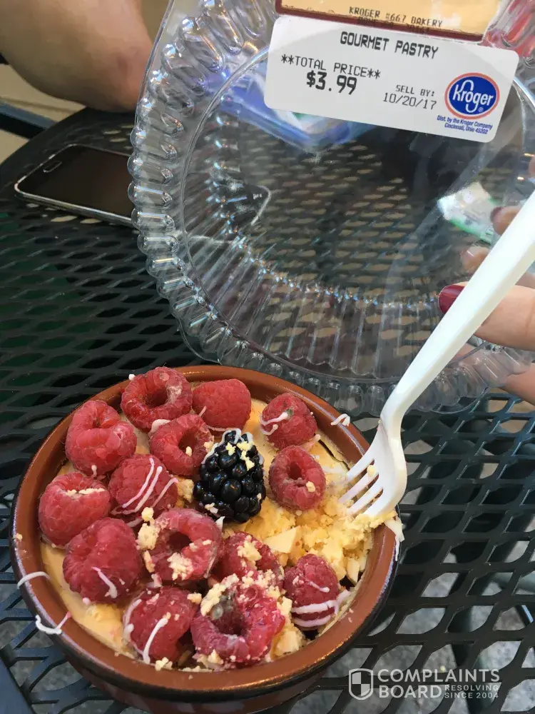 Hi. My name is Madison Dawkins, and today (10/20/17) around 2:30 p. m., I visited the Kroger on Turner McCall Blvd in Rome, Georgia. Along with upwards of $30 worth of other deli/bakery items, I purchased a creme brulee that was topped with raspberries from the "fresh" pastry case in the bakery section. I was taking lunch to my fiance who works at the Barnes and Noble next door, and I thought this would be a tasty dessert to follow up our meals. However, much to my disappointment, when I opened the creme brulee, I was immediately dissatisfied with the texture and taste of the actual custard. It was chunky and crumbly, almost as though it had curdled, and the overall taste was simply off. I took a few bites, including approximately of the raspberries on top, before one of the berries turned over, and I was able to see that many of the berries were filled with green/black mold and other fuzzy growth. This pastry was within date, and I must emphasize that the growth on the berries was on the underside (inside the hollow section of the raspberries which had been turned upside down to decorate the pastry), leaving me to believe that the mold was there before the berries were ever put on top of the creme brulee to begin with. I'm not sure if this is an issue of employees improperly dating these items causing them to expire before their marked date of expiration, or perhaps a temperature issue, which would explain both the growth and the seemingly curdled custard. Following my lunch, I promptly returned to the store with my receipt and proceeded to speak with the manager on duty, Jeffery. I was disappointed at how casually he treated the situation and shocked by how quickly he removed the product from my hand and threw it away. Luckily, I had already taken photographic evidence before it went in the trash can. He proceeded to tell me that raspberries were very susceptible to this kind of spoiling, basically implying that I should have looked over my pre-made pastry more closely before putting it in my mouth. I was given a refund for that item only, and both Jeffery and the clerk who refunded me did apologize for the incident. However, as someone who just consumed a toxic substance at the hands of Kroger, an apology and a $4 refund were not even close to adequate compensation. I work in the service industry, and I understand that these kinds of things happen. However, when someone who patrons my business has a complaint about an incident such as this, I make sure I go above and beyond to right the wrong, even when their complaint is not in regards to something as serious as consuming multiple varieties of mold in the food I just served them. I have been a long-time patron of Kroger, and it's among my favorite places to grocery shop. However, today I felt very undervalued, dismissed, and pacified, and I must say that the handling of this situation has resulted in my desire to never return to this particular Kroger location.