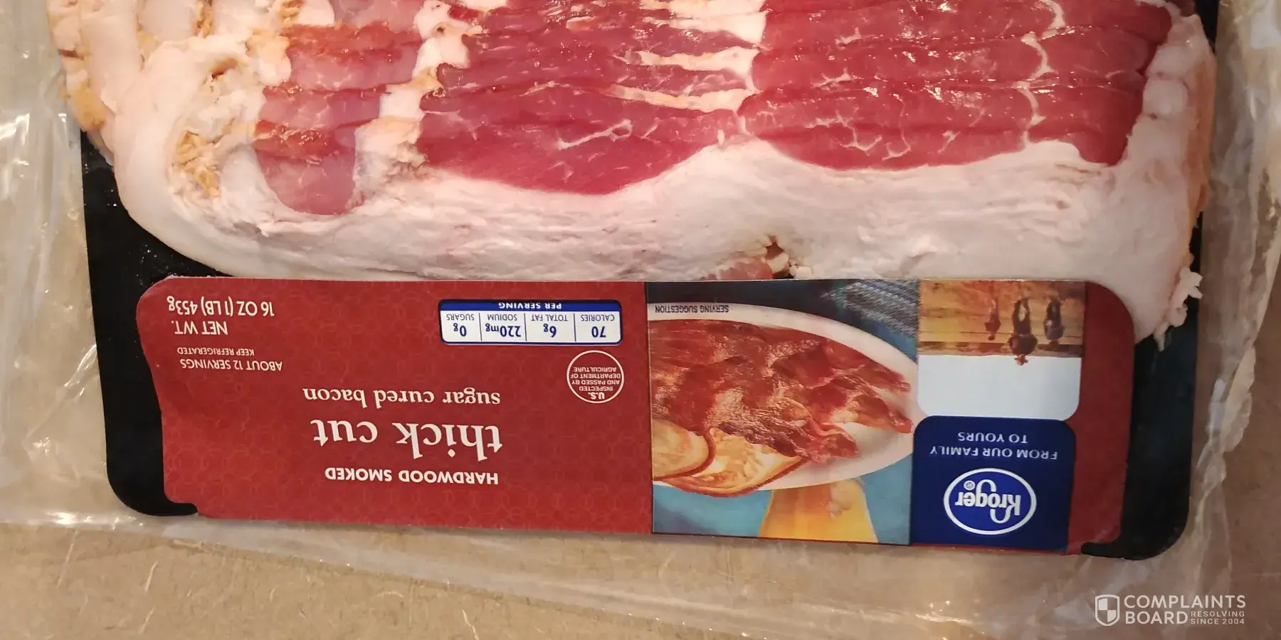 I always buy the kroger (at a Smiths) thick cut bacon but lately I have been very disappointed. I have pictures of the package I opened this Saturday that had such a thin line of meat that it was nearly non existent. Each strip was 95% fat. I am staving photos and hope this can be rectified