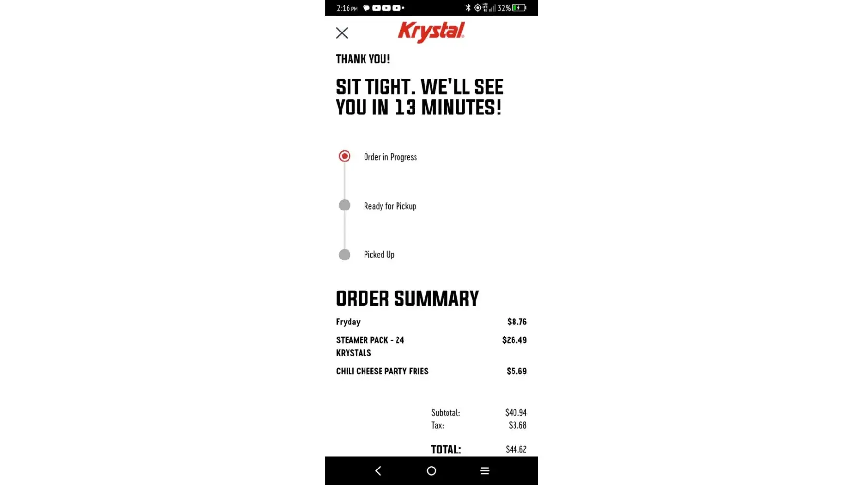 Krystal Order not right food was tainted