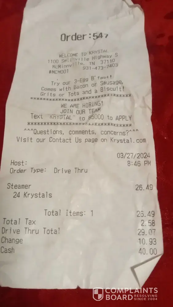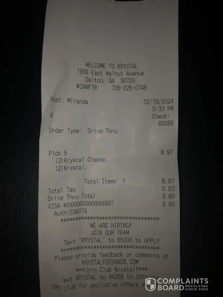 👉  Submit a complaint about Krystal
