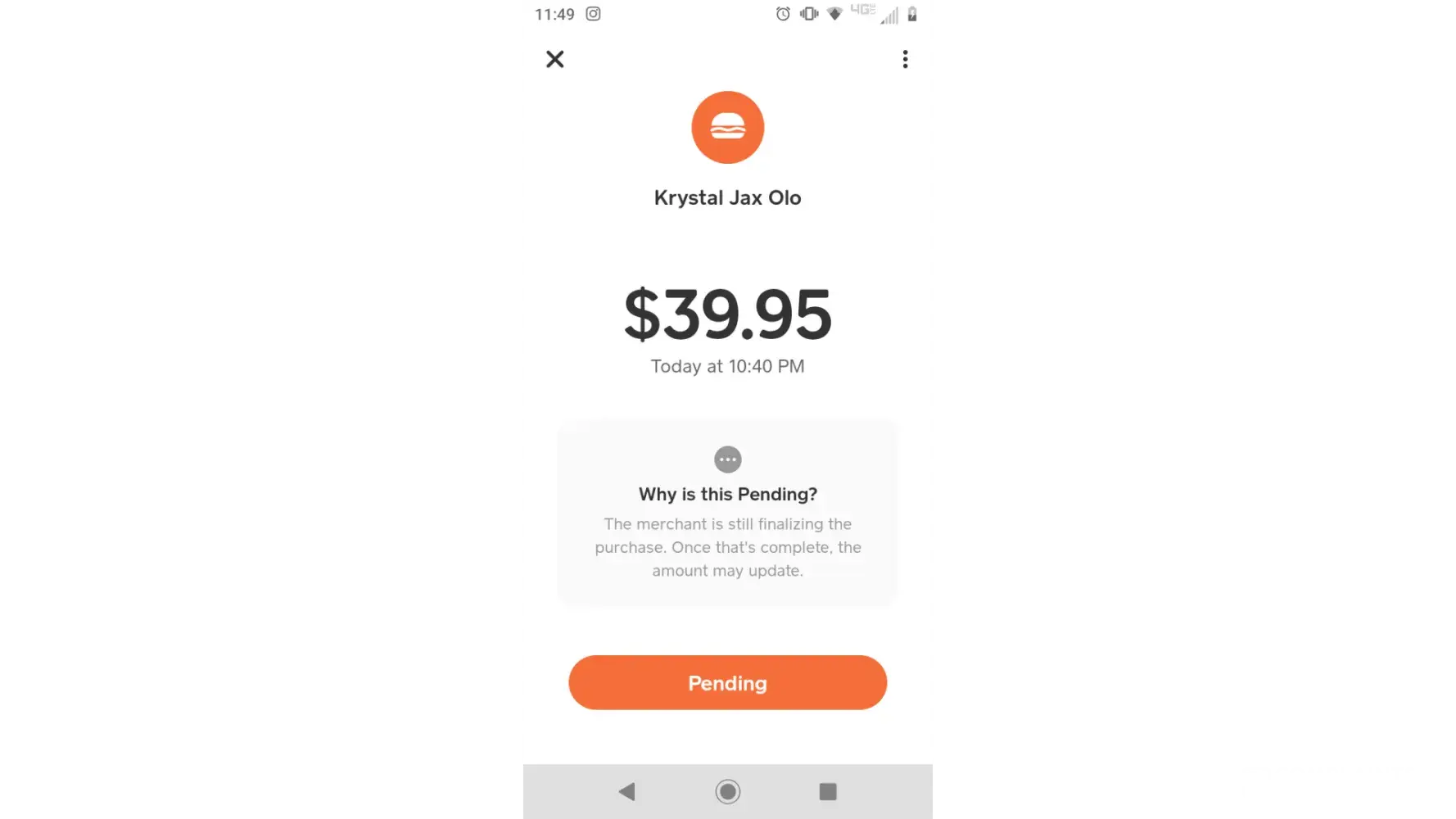Krystal Charged for items not order