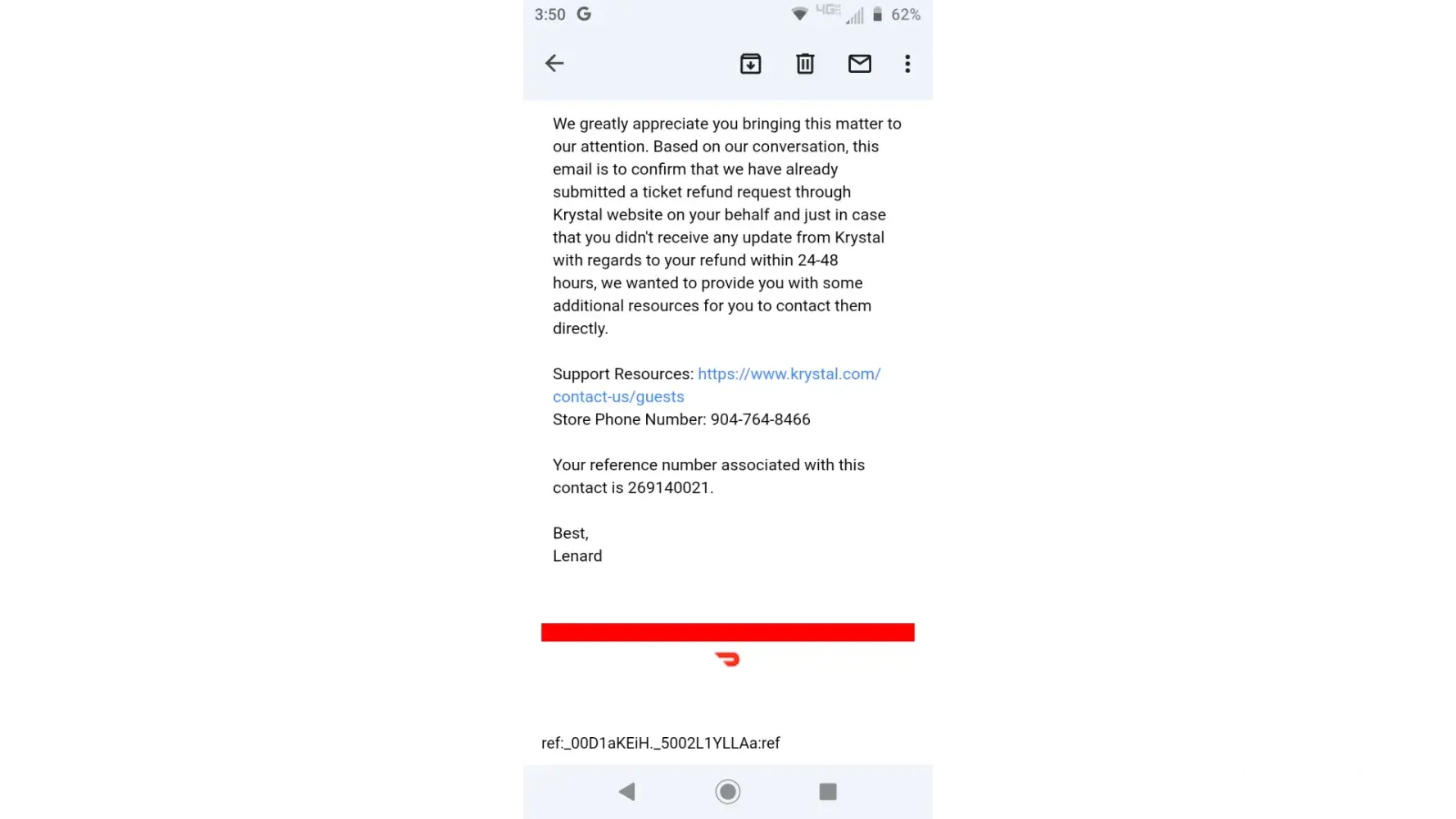 On december 16, 2021 around 9:45pm, I ordered my kids and I food from krystal through krystal.com. When door dash arrived to pick up my order about 11:15pm, this location was closed which this location opens for 24 hour. I have been getting the run around about refunding my money back to me. Krystal blaming door dash and door dash blaming krystal. I have been filling out these complaint forms since december 17, 2021 and nobody has yet to contact me about my money. I want my money back now!