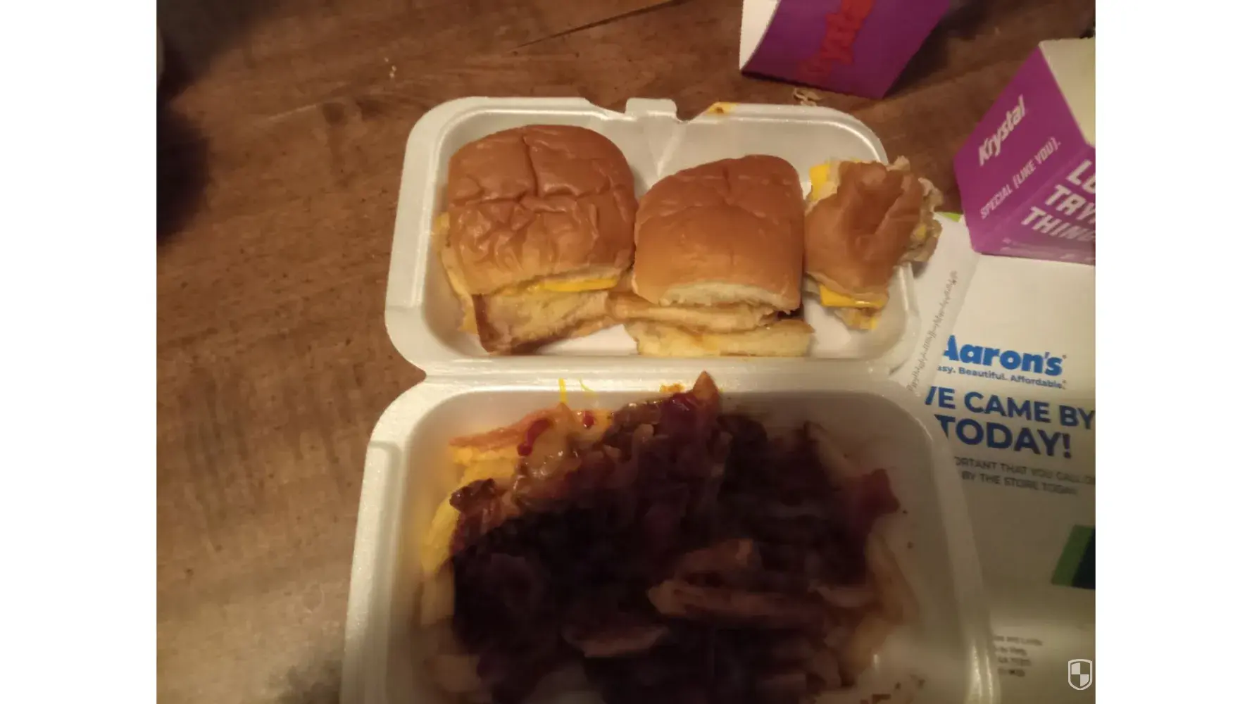 Krystal I had three double cheese krystal plain and a order junkyard fries