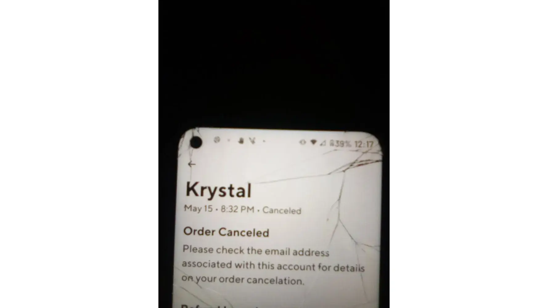 Krystal Never received order.. Wants full refund