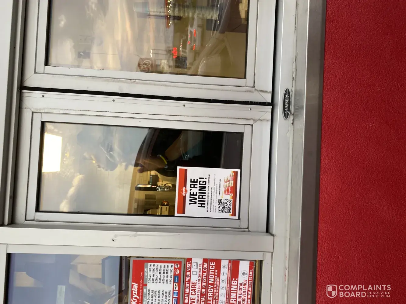 I arrived at Krystals on Wrightsboro rd in Augusta ga. I did not see a sign anywhere saying drive thru only! As I approached the door a Krystals employee in a black Chevy Malibu drove up yelling "we drive thru only" I said ok maybe a sign would help. She then started yelling at me like I did something wrong. She then drove around and stared me down yelling something. Rude people will never get my business. I hope you fire this rude non professional person.