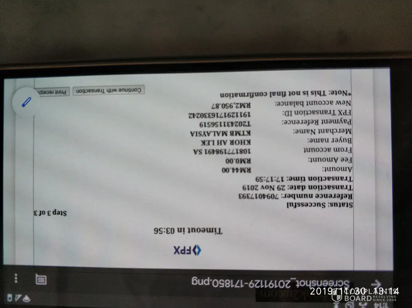 And the computer shown a note "sorry...the transaction bla bla bla...".