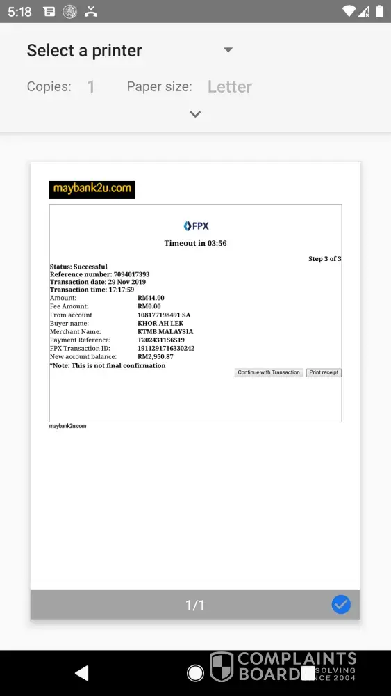 Then i forced to make a second booking. This time i received the OTP no. And i keyed-in the OTP no. too. The page jump to "print'. It's mean the transaction was successfull.