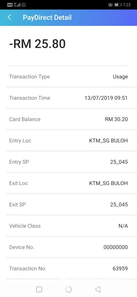 My card touch and go from batang kali to sungai buluh its not insane because i have to paid RM27.20 to that station. If online website the price is only RM4.50