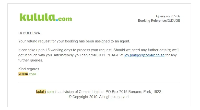 email staing that Kulula issues me a voucher