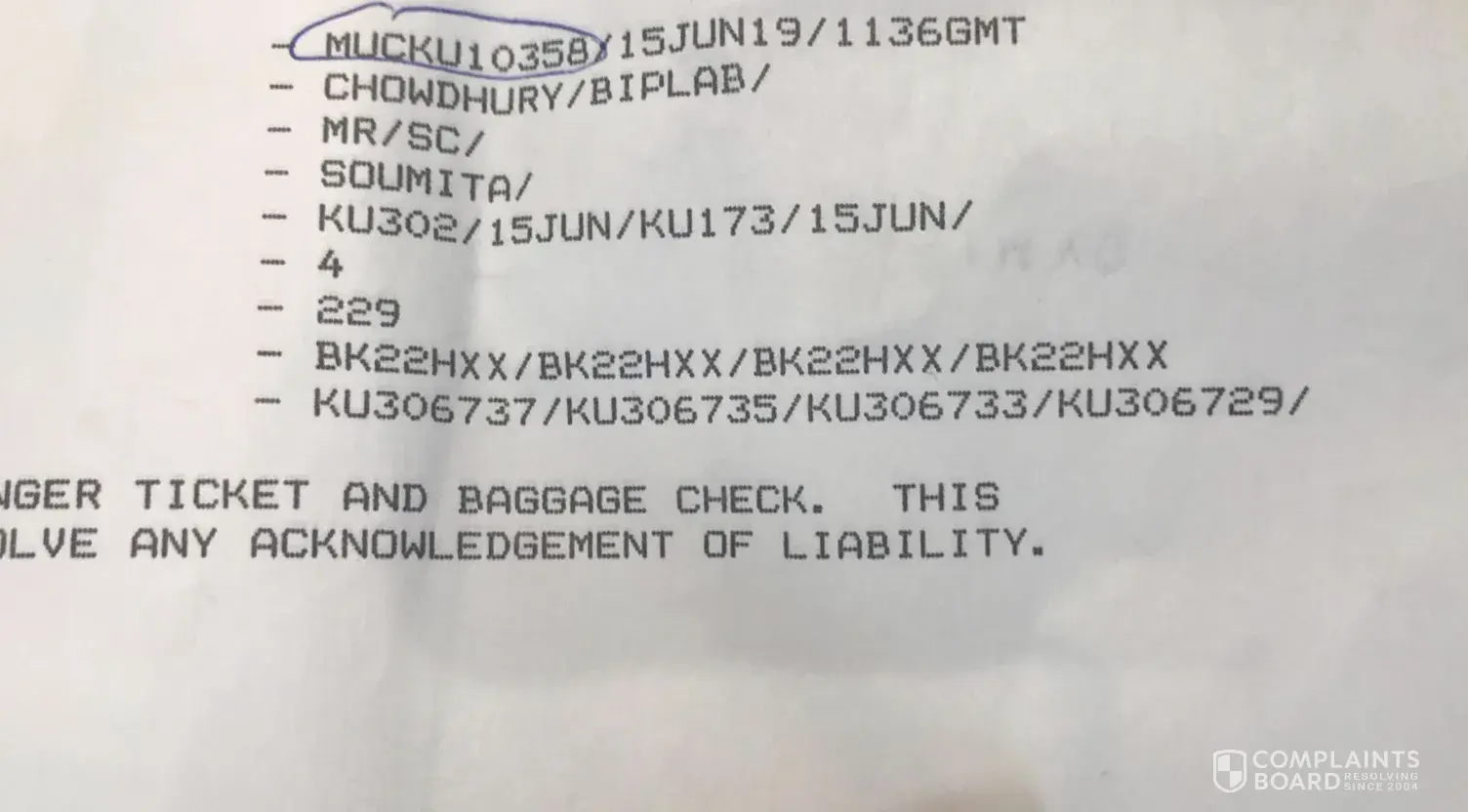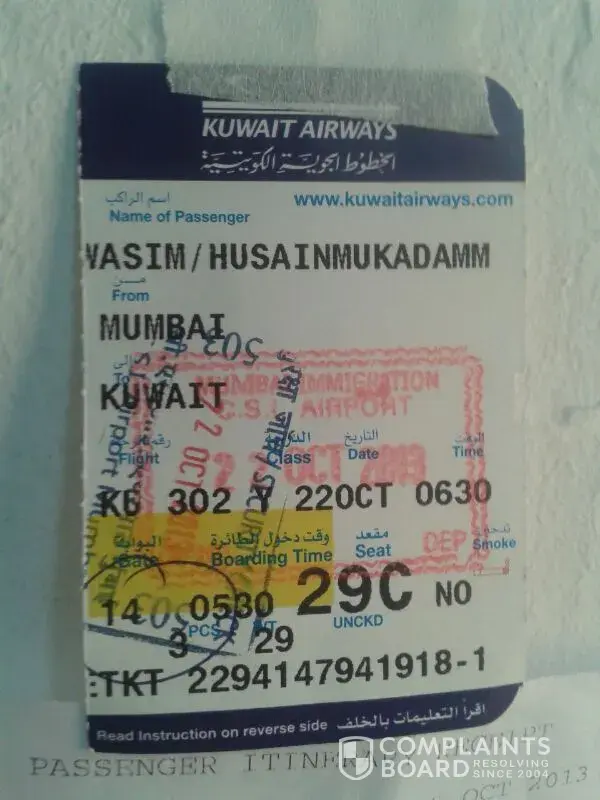 I travelled from mumbai(india), to kuwait .on 23 september. TICKET NO : KU304 23 SEP 13:05