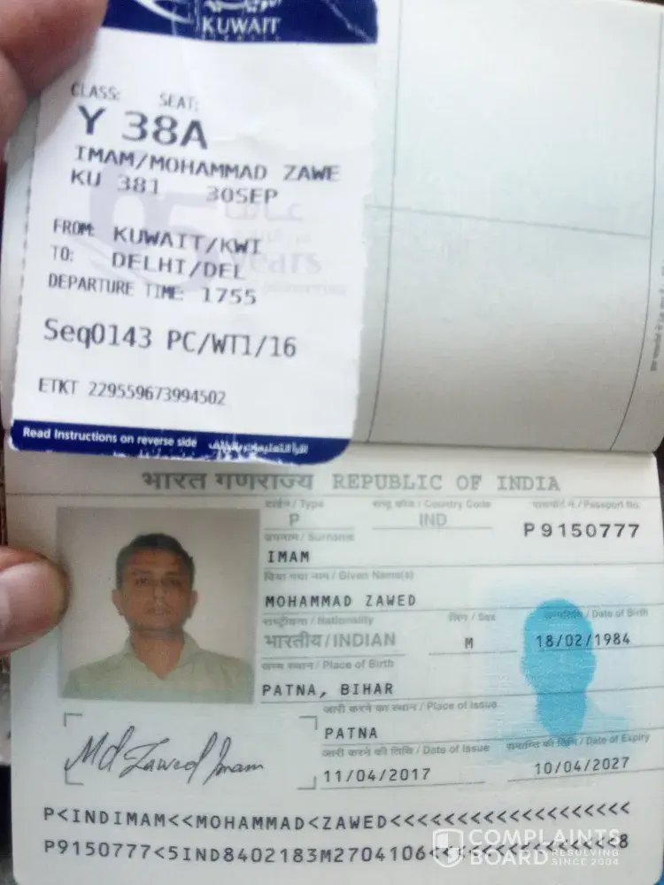 This is to submit my complaint that below passengers of my family travelled by kuwait airways KU-381 to New Delhi
