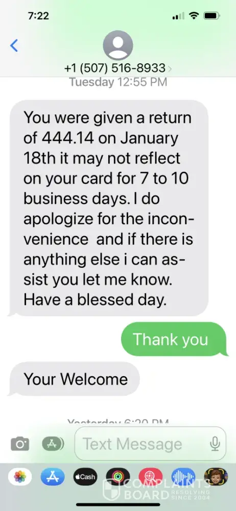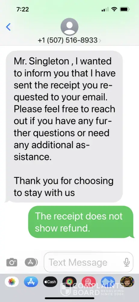Read full complaintRefund promised