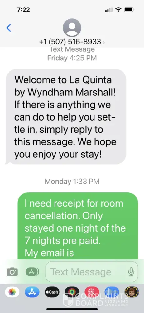 Read full complaintLa Quinta Inn Bloomington MN Refund for 1 night plus the $100 deposit