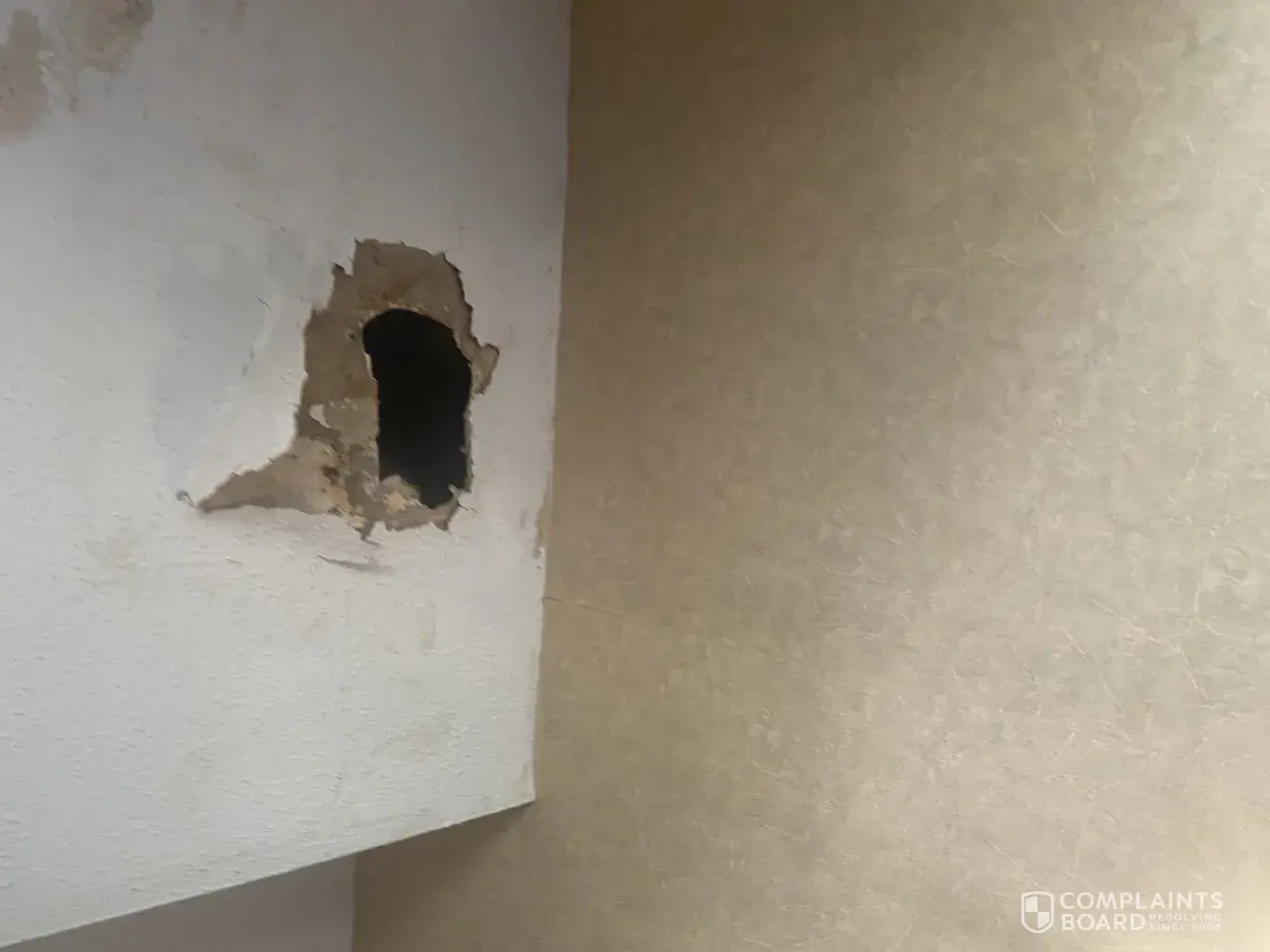 Hotel was horrible and disgusting. Rooms not done hallway fire doors locked, dogs barking no to very poor outside lighting . Huge holes in ceiling leaking what appear to be sewage water based on smell. No doors locked so anyone could access hotel without a key. Rooms smell of mold and smoke phone did not work . Floor soaked due to leaking fridge. Ect