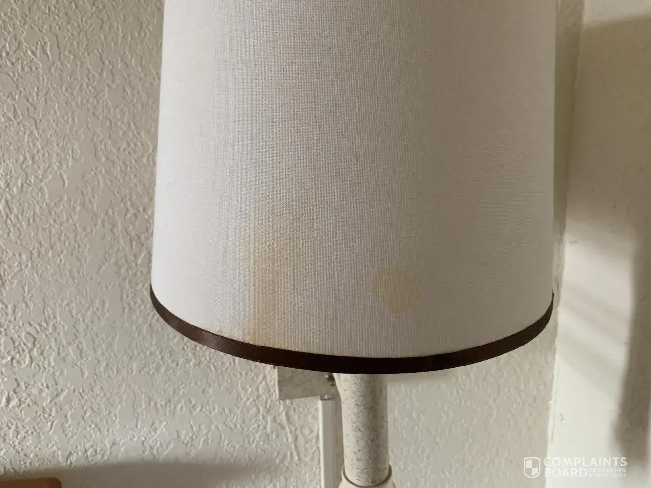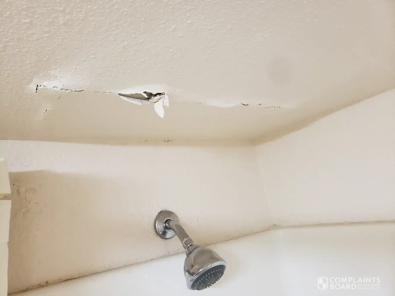 The ceiling was damaged and starting to fall apart. The damage was located above the shower. I was asked to change rooms and no refund or free stay was offered. Our stay wasn't as described.