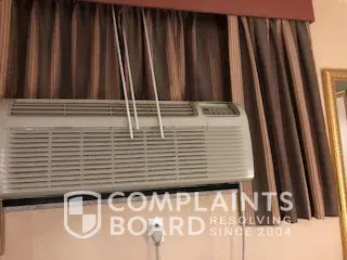 Hi. My name is Tyler Beffa and I'm complaining about the AC not working in my room. I have it set on 68 but feels like it is on 75. Also, near the front entrance in the corner is a big hole that is exposed for everyone to see. I think that someone needs to come out and see the damage. I am staying at the Laquinta in North Kansas City off of Armour and...
