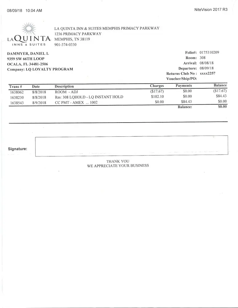 I made reservations 7/27/18 and 7/28/18. I am a member. I was so out done with the quality of the room. I drove 16.5 hours from Memphis, TN to Denver, Co. The room had mole on the ceiling and shower curtain in the bathroom, dust in corners, trash (papers, plastic utensils, old sock), floor/carpet dirty dark brown spots very visible through the green carpet, wall had brown spots as though fluid splattered, odor was bad, light fixture didn't work, soap scums on mirror and the number to the room was painted on with a marker. I was so exhausted just finishing my cancer treatments to show up for my sons birthday celebration who is in the navy at Buckley Airforce Base. I got to the room around midnight. We purchased sheets and blankets from Walmart to use as barriers so I wouldn't get sick but did anyway. I was afraid your establishment would keep my money. I can't believe I stayed. The young lady said you had to pay up front. This was horrible and unacceptable. I'm hurt that The LaQuinta I'm accustomed too would have their name on this building. This is wrong on so many levels. I'm very unhappy and will never stay there again