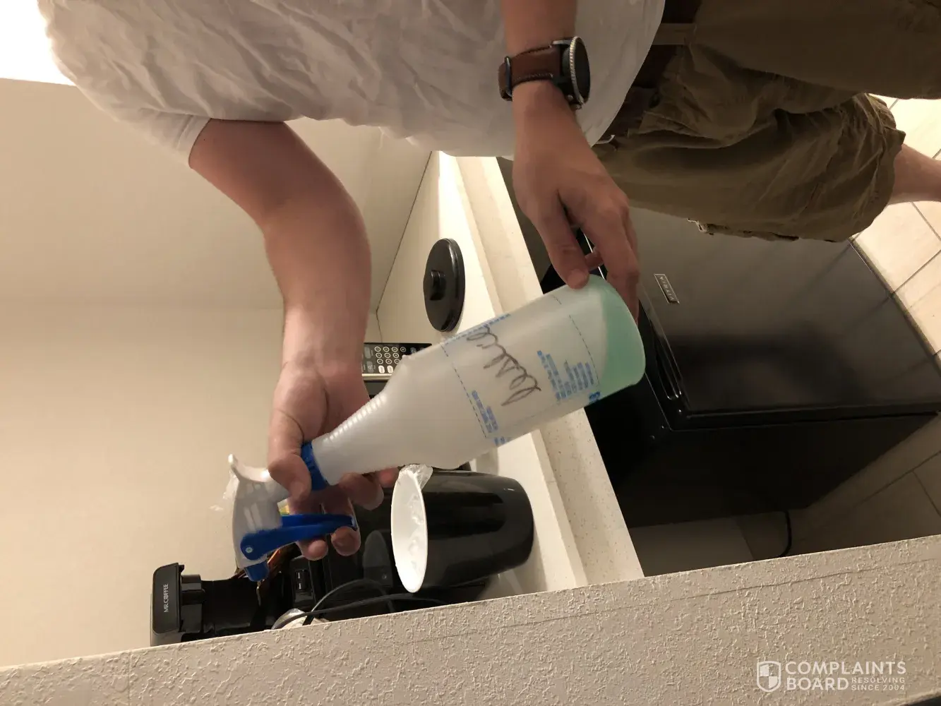I am very disappointed in the quality of my room. Your establishment states that it is 100% smoke free however my room smelled so horribly of smoke that I needed to use my inhaler as soon as I entered the room. I requested a new room because of this and the front desk would not change. This was what I was handed when I asked for a change! This was to get rid of the smoke smell. Also was recommended to turn the air conditioning on to change the filter. I do not smoke cigarettes and would not like my clothing to smell like smoke because of this room. This is completely unacceptable. Especially since it sent me into an asthma attack. I have this photo saved and will be sure to inform my friends.