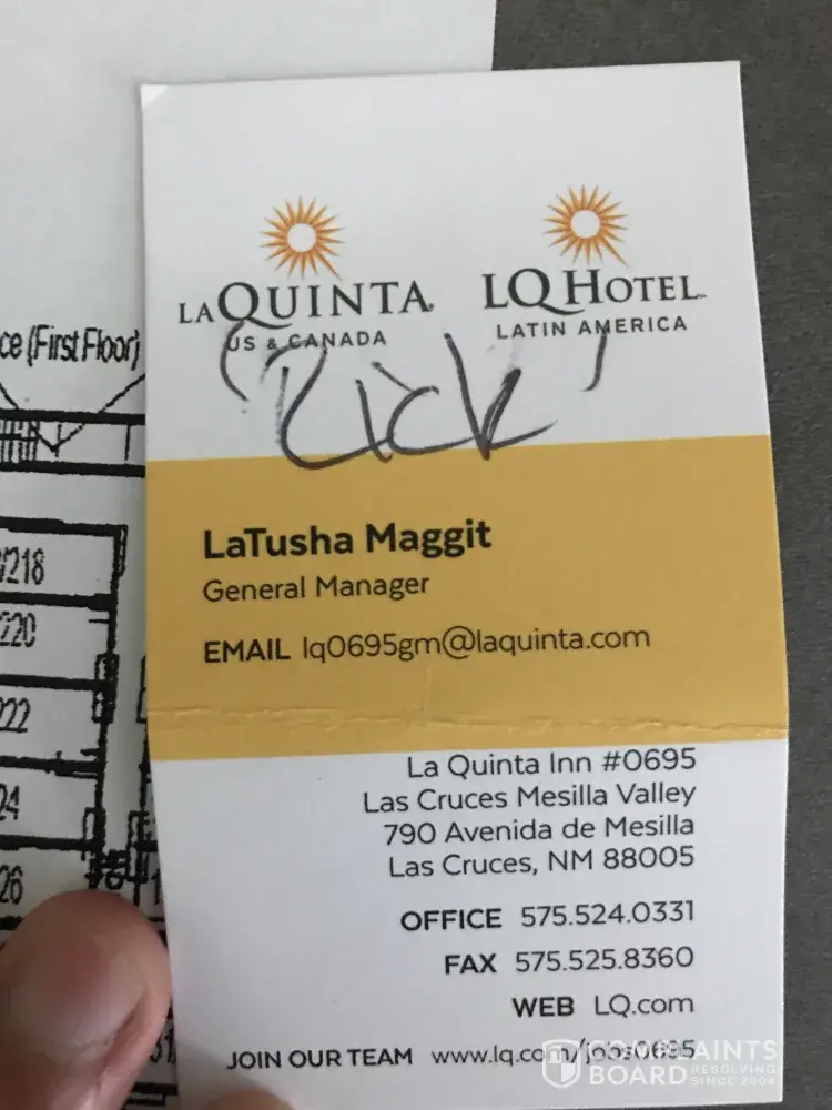 I will NEVER stay at this location and OR any of their other hotel chains, WAY TO GO LA QUINTA AND I WANT MY 532.30 CREDITED TO MY CREDIT CARD.