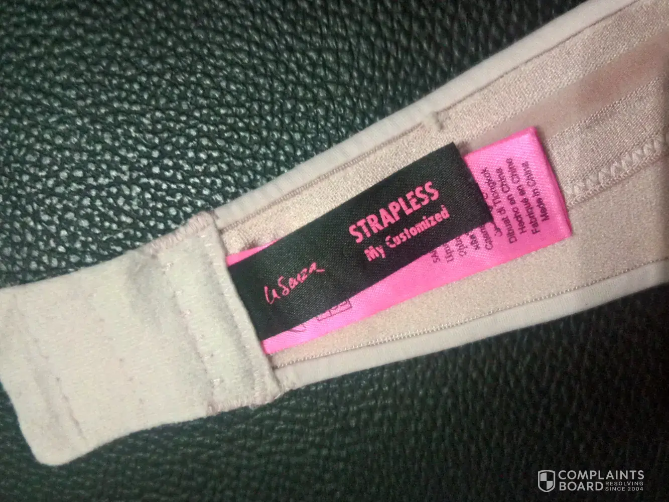 Bought this strapless bra from La Senza. I only wore it few times whenever I'm wearing off shoulder. The lasst time I wore it was 2 weeks ago I noticed that I had a burn on my skin with the shape of the lining of the bra. The actual photo of my burned skin got deleted so I attached this photo attached which was taken today where you can see the scar. As you can also see on the bra style there is an adhesive (I don't what it's called) I this is the thing that make the bra stick on the skin and also I think is the one who caused the burn on my skin.