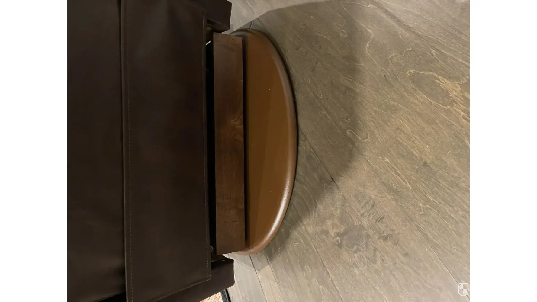 I bought this Lazy-Boy swivel rocker recliner and the base sticks out 10-12 inches from the back of the recliner. It has an exposed 6 inch board that is not covered in leather that is visible to the eye. It is horrible looking and I am told there is nothing that can be done to correct it. Unfortunately for me, I did not noticed this until I moved the recliner into my den. So I am out $1500.00. Make sure you look all around your purchase because this is so ugly.