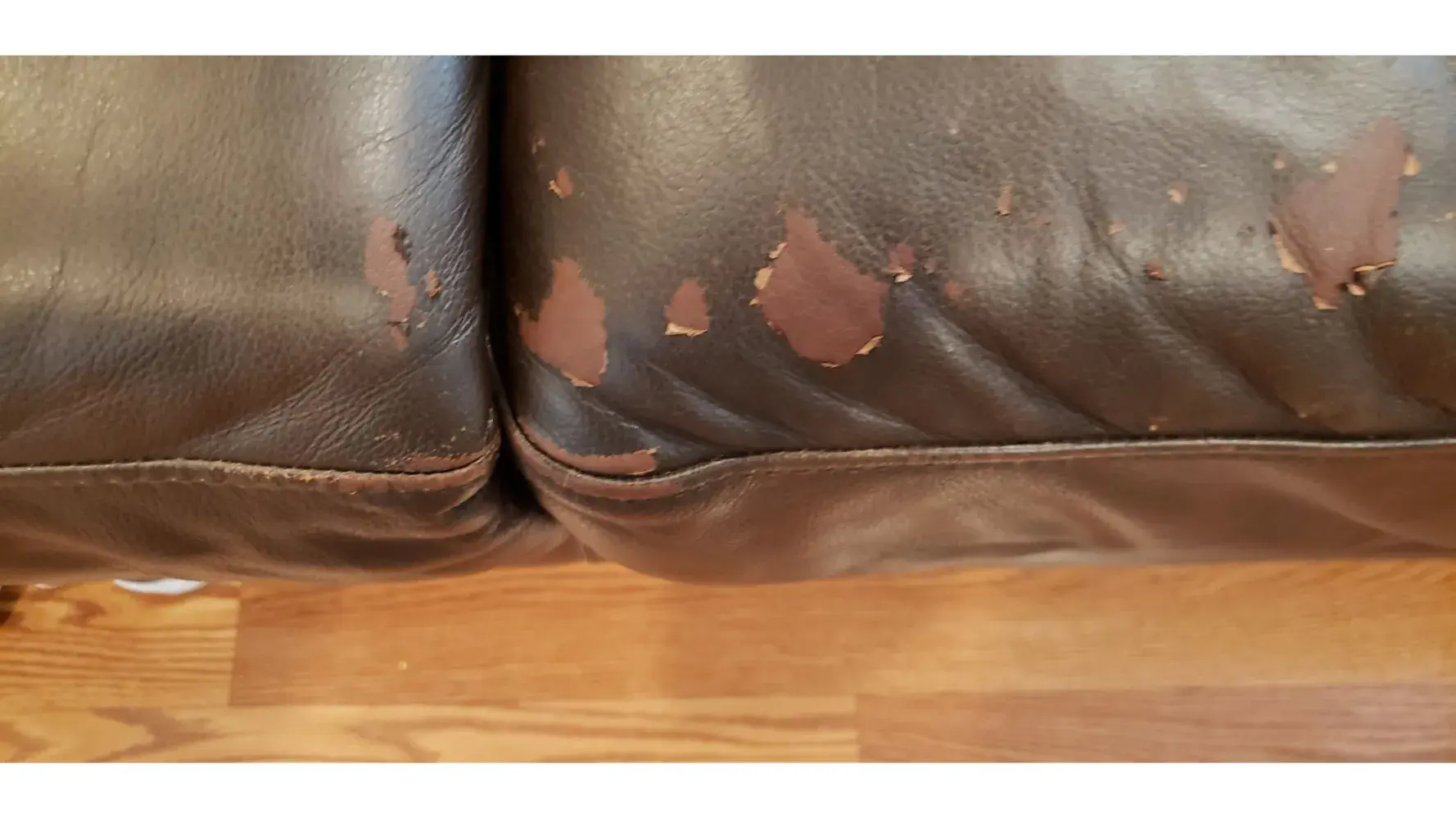 The "genuine leather" turns out to be a composite fabric comprised of leather biproducts that are mashed into a paste and bonded to a cloth backing, then coated with an ink and pressed in order to apply the appearance of grain and to bond the materials together. It is in no way genuine cow hide, as was explained to us during the purchase process. We were misled and deceived.