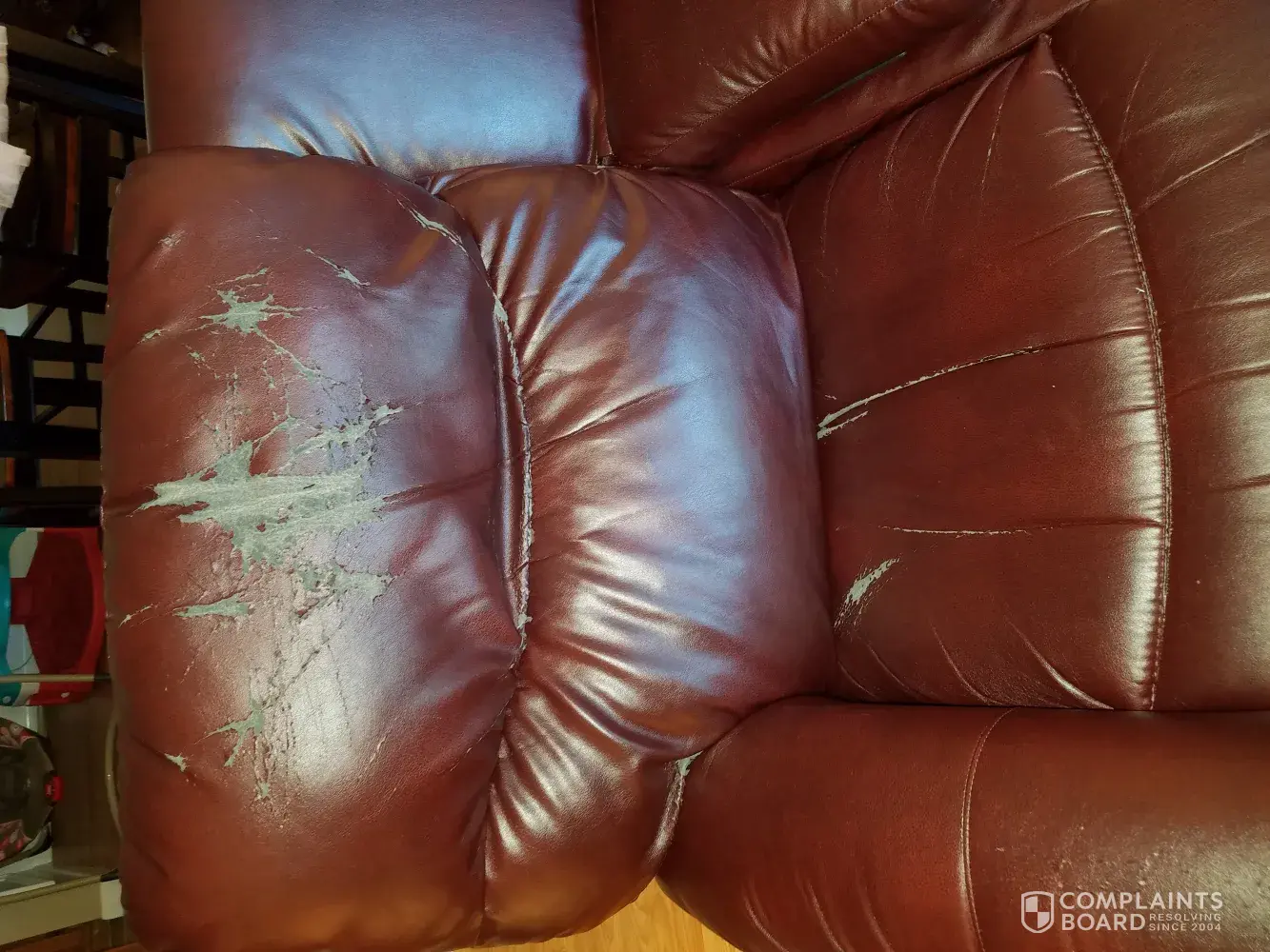 We have experienced the same thing. We bought form Lazy Boy, because they were known for recliners and quality. We were told in the store we were buying a leather recliner. We paid $1150. Two years later the leather is flaking off! Our local store is closed. I called the next store within our area, and were told it is out of warranty. We were scammed and lied to. DO NOT BUY LAZY BOY PRODUCTS! The sales people are CLUELESS! Very angry and will spread the word.