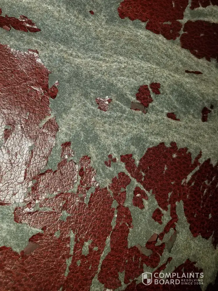 I purchased a custom Dark brown couch during the pandemic took 8 months to receive and the 2 years later a bubble appeared? it finally popped and come to find out they painted dark color over an existing lighter brown couch, now they say it is out of warranty and will not fix it even though I say you never delivered what I ordered leather couches are dyed not painted there is no way it should peel, fade maybe! and under is the lighter color that is perfect, they scammed me and should replace the entire couch.