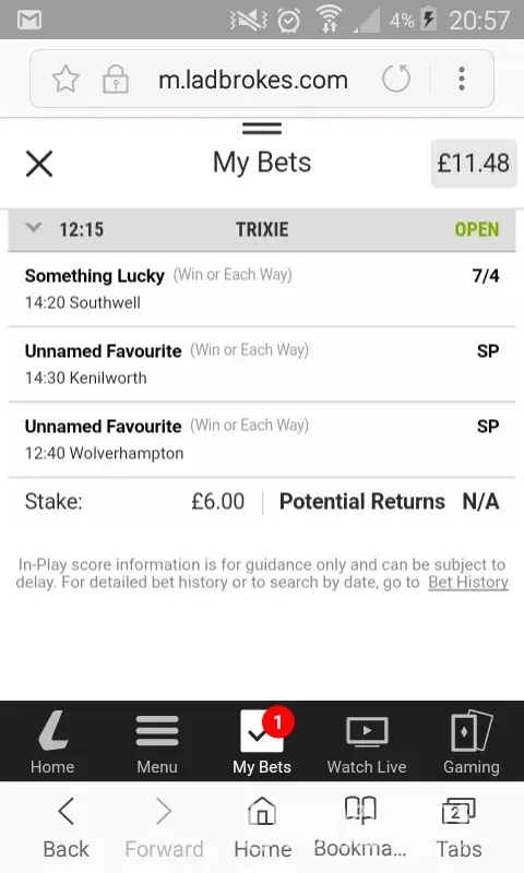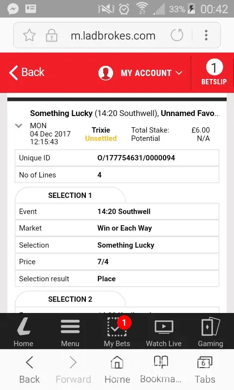 On the 26 th of march 2018 i have bet 40£ on 6 games, one of them playing that day and the next 5 on the 27 th of march 2018. The first game was a win and i had the cash out option for 71£ but i didnt cashed out. The next day on the 27th of march 2018 as the first game started my cash out war suspended by another match so i ve been to the nearest ladbrokes agency and explained to them whats happening. They called the customer service and let me talk to a guy, that guy told me that i made an accumulator bet and this is how it works but its not true it was not the first time beting i tryed to talk with him but pointless...in the end i was not able to cash out. Is there anything i can do to recover at last the money i lost if not even something more because at one point i would have a pretty amount of money to cash out. I have to mention that i was using the mobile app to get. Kind regards and i am waiting for an answer or advice of how to proceed next