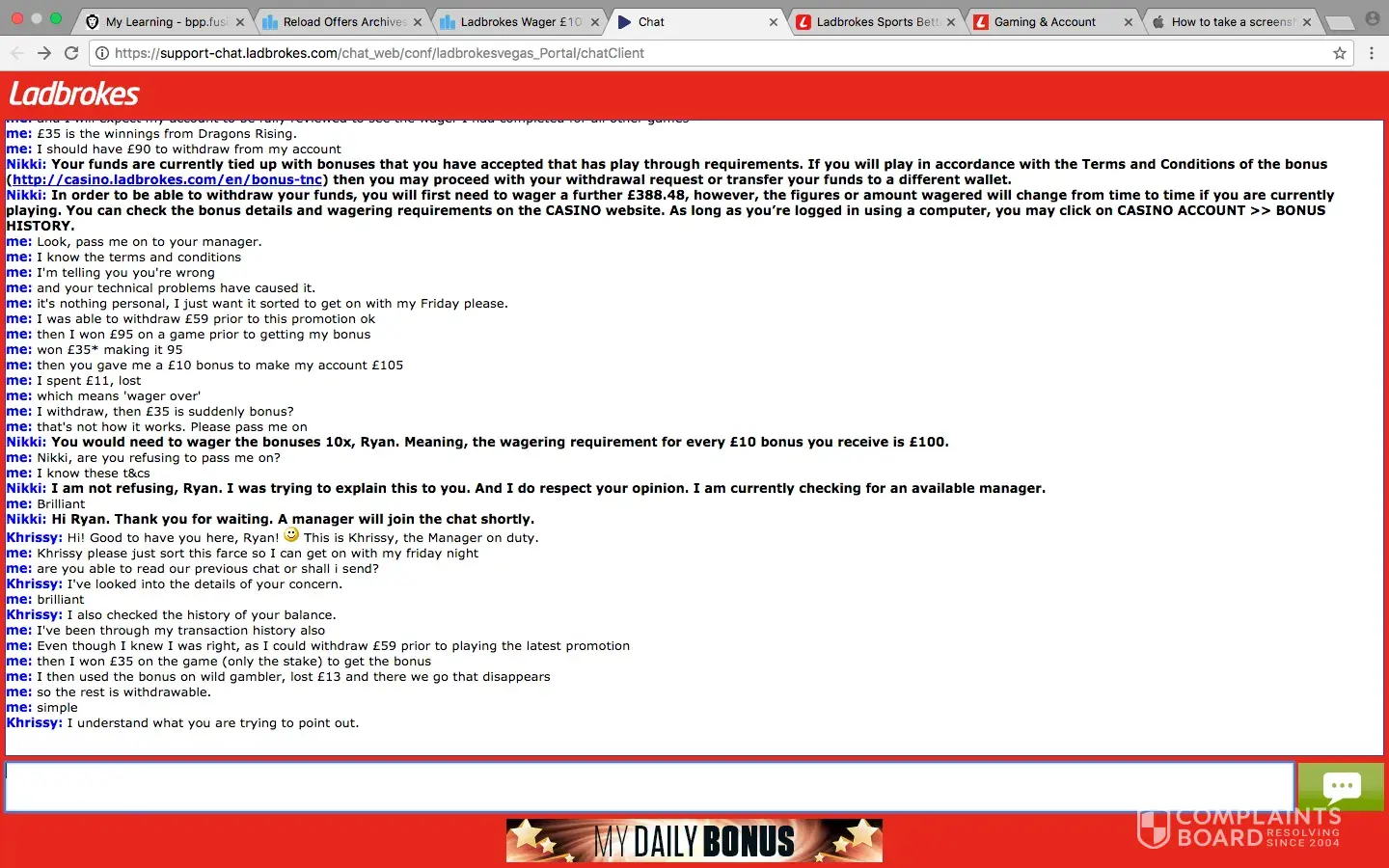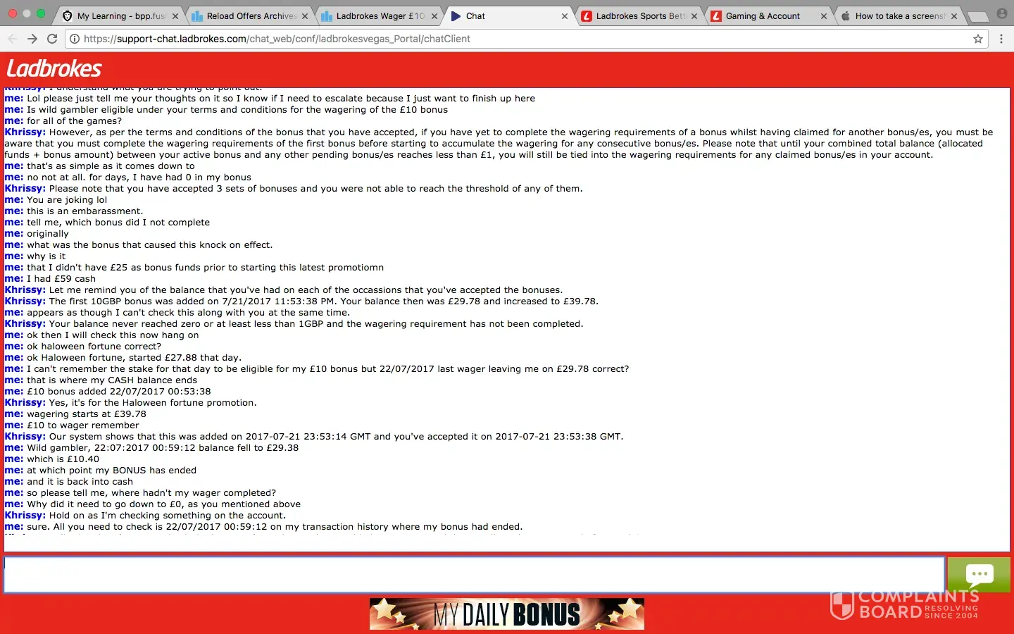 me: yes sending complaint to ladbrokes