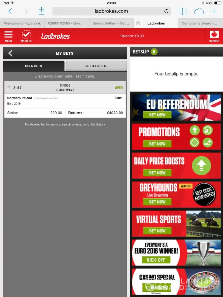 Ladbrokes have constantly been breaching the gaming act and pushing customers from pillar to post they offer promotions but then do not make them available to customers. Inaccurate information is keyed in and given by various staff both on line in chat rooms and especially on customer service line who patronise people they should never dare to patronise and call customers madam regardless of how many times they were told my name is tricia. I went through to management who promised to put things right but was then given a wrong number to contact which went through to cancer research donations line. I have wasted too much time complaining and i have told my whole world family to back me if they love me and shop elsewhere. Lad brokes had no idea who they were messing with the inspectors need to call worldwide listen to all calls made by shop staff in alvaston for grid account holder 5794417 and to ladbrokes customer service ladbrokes gaming and ladbrokes casinos. Also calls of other customers who all get offerred the same things such as 25 free bets per day, loyalty bonuses without having to make deposits and more all stolen by ladbrokes management and staff