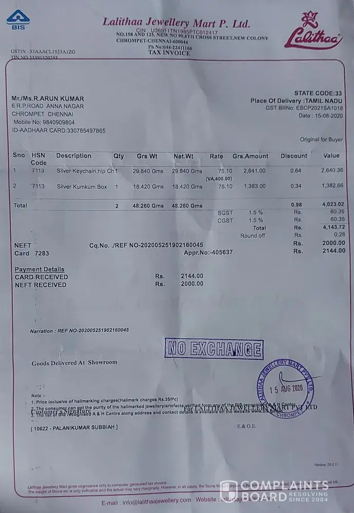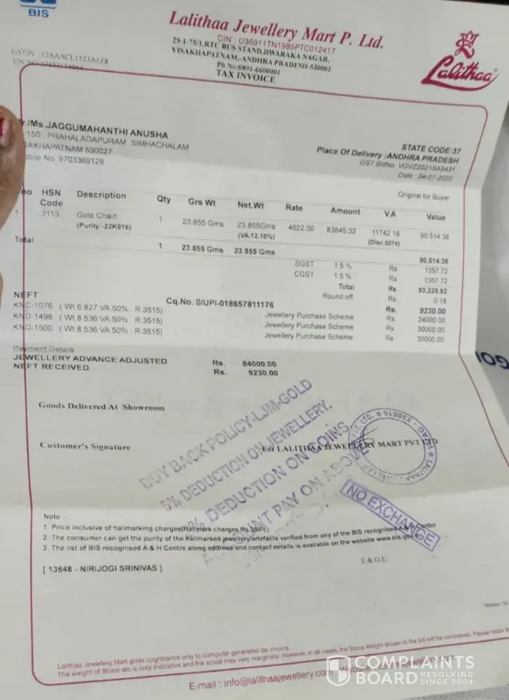 Complaint about Lalith Jewellery