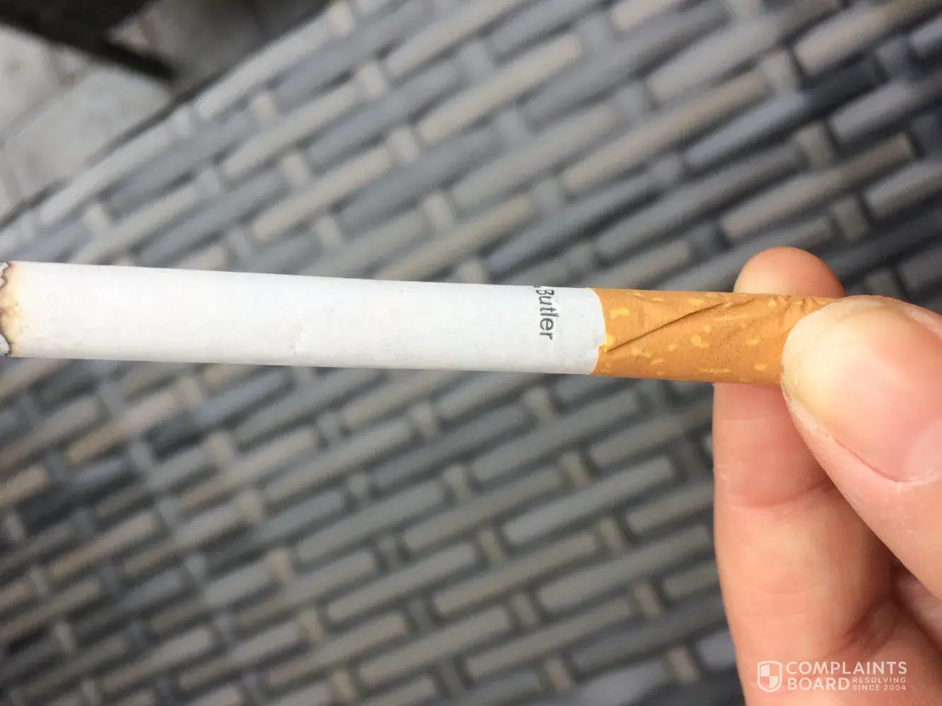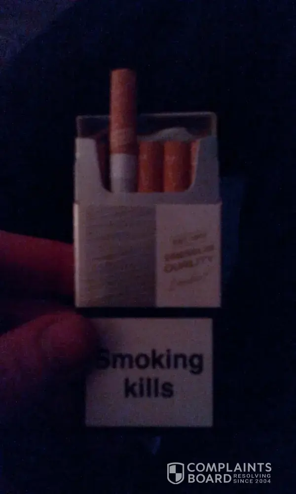 I recently purchased a packet of cigarettes from a local shop, after getting through half of the packet I noticed that some had been eating away at them, only too find a caterpillar attracted one of the cigarettes, I am very unhappy about this and would like it to solved immediately