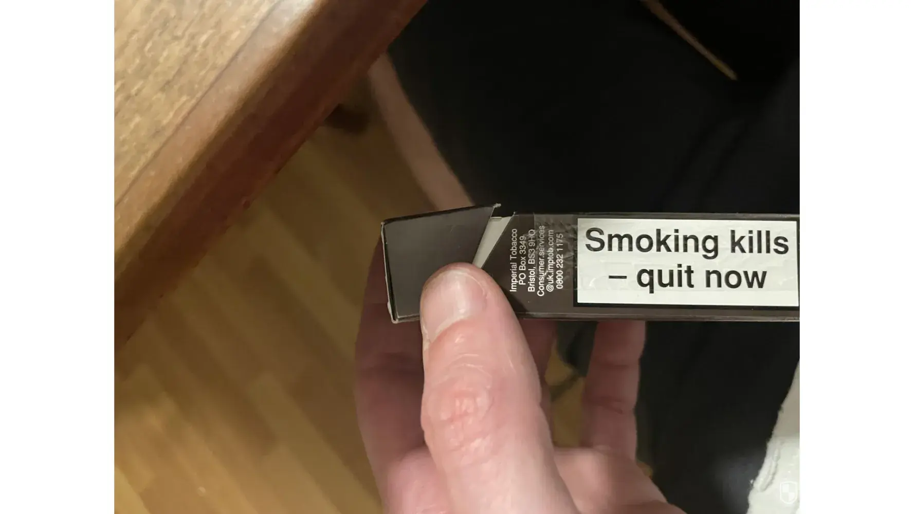 She has problems with hard bits in the cigarettes, these parts are alight and drop down. Our kitchen wooden floor has been ruined by burn marks caused by your poor quality cigarettes. The light covered carpet also has many burn marks.The 4 year old leather sofa has also burn marks where ash has dropped.