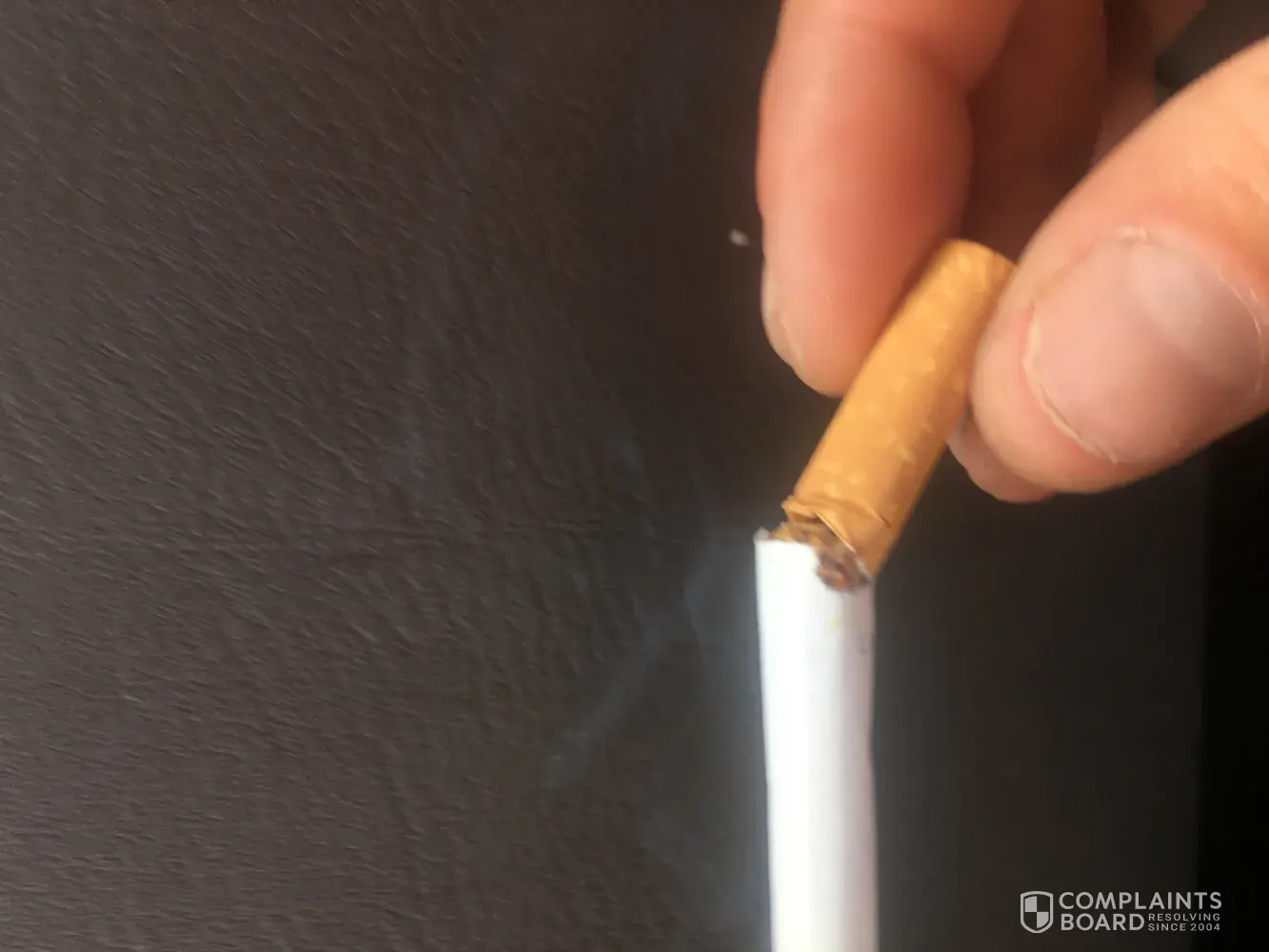 I know cigarettes are full of crap and give you cancer but it's my choice to smoke them knowing this information so that's my own fault, however when I pulled a cigarette out of the packet and a lump of rubber falls out of the cigarette that is your problem, on closer inspection I know that this bit of rubber is made of a tennis ball as I can see the unique colour green fuzz attached to it, as I have previously stated it is my choice to smoke but I choose to smoke tobacco not a chopped up tennis ball that is obviously being used to 'bulk up' the cigarette. I want an inquiry as to why this has happened please.