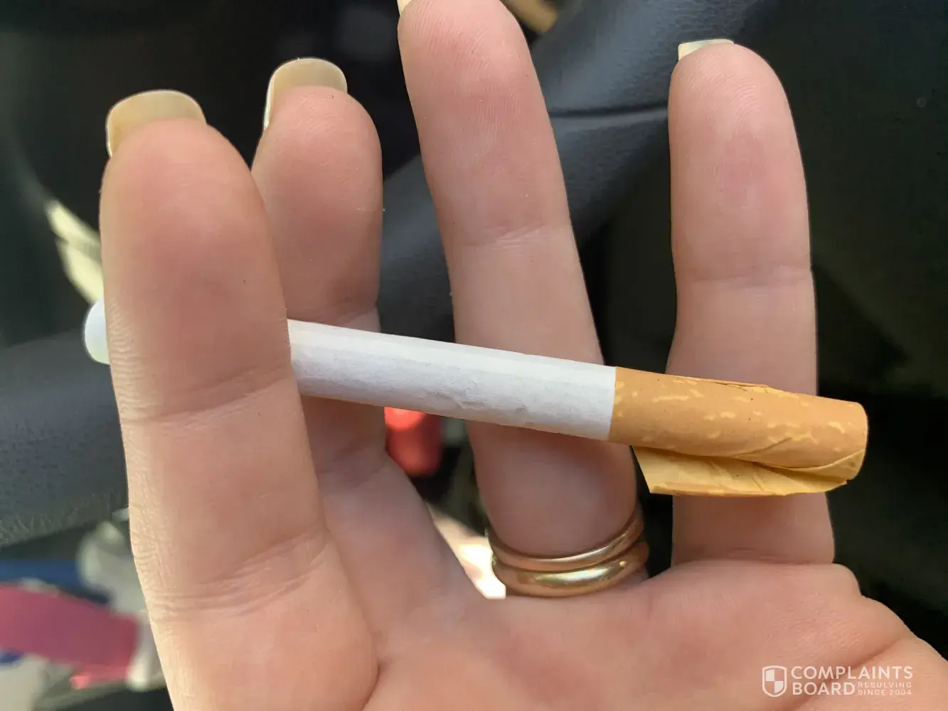 Upon opening a cigarette I found a strip of fishing line around 5 cms inside the cigarette. I had already smoked a few from the packet so it's quite possible I had smoked a cigarette with the wire in. As a long term customer this is something that would make me take my business to another brand. I await your reply regarding this serious matter. [protected]@gmail.com