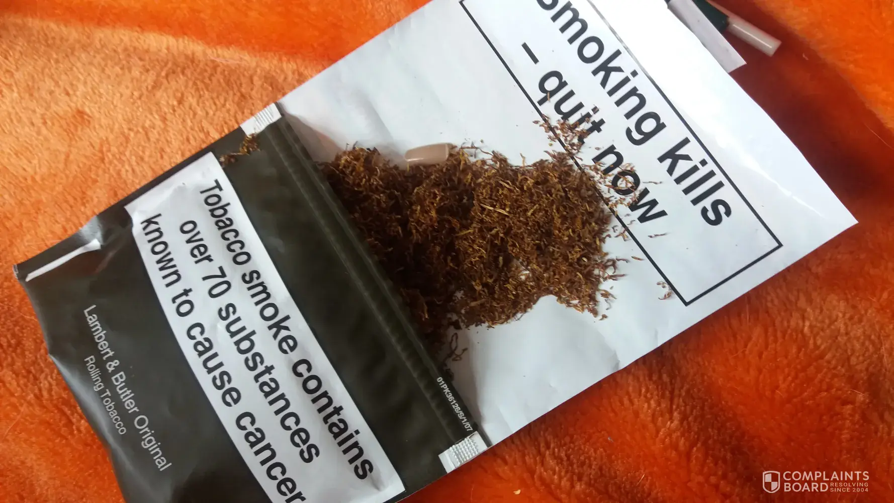 I purchased a 30g of Lambert and butler Tobacco and as i was halfway through my pouch of tobacco I came across a false nail in as it has dried nail glue on so a used false nail so and obviously has germs on it I had smoked most of it and noticed at the bottom of the pouch I am disgusted by what I have found as I have been smoking Lambert and butler Tobacco for a few a while now and I have never seen anything like it my anxiety is going nuts as nails have germs and I will not hesitate to take this further if something isnt done about it