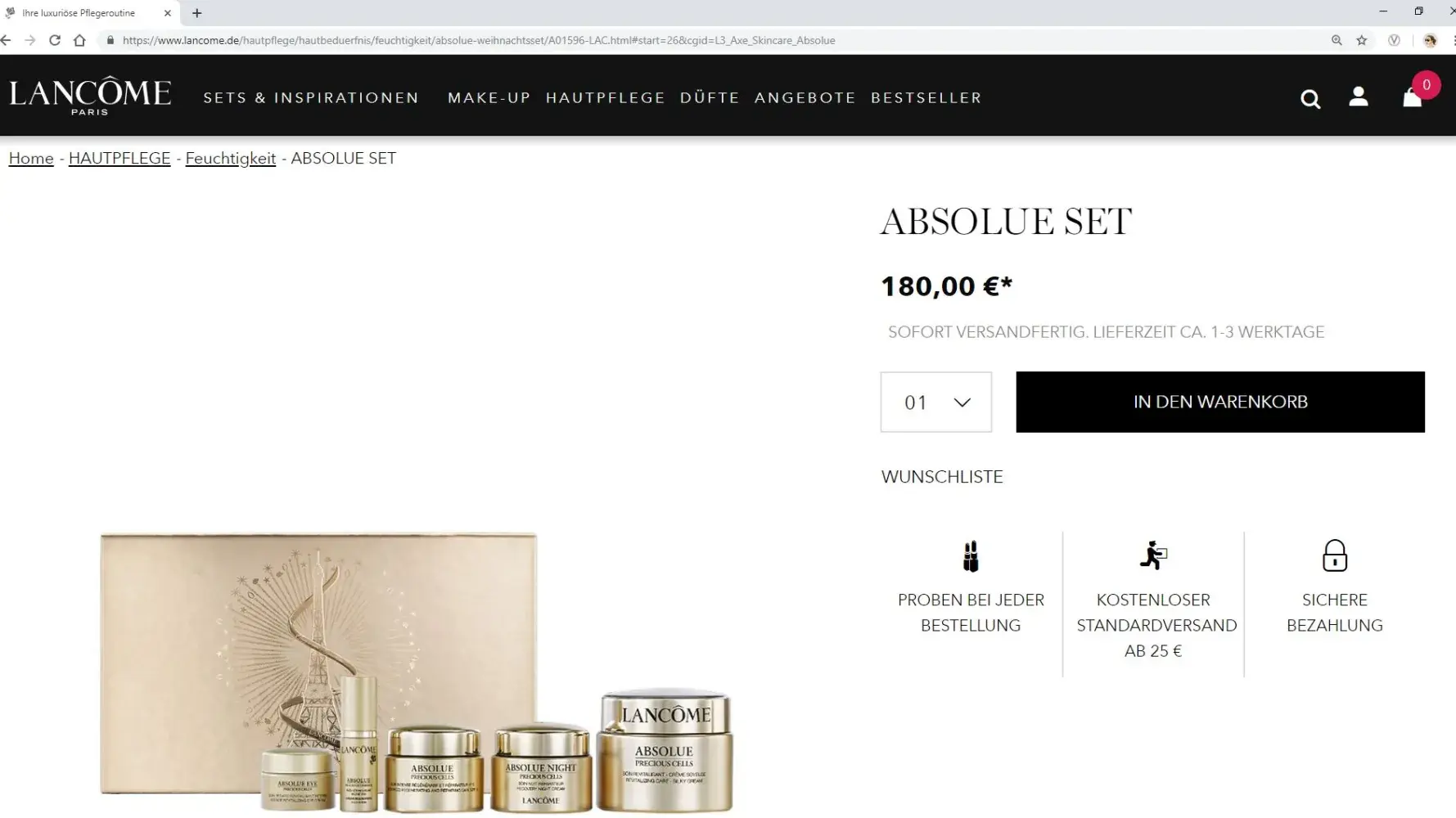 On Lancome.de this ABSOLUE SET is only shown as a picture without any description. The picture shows the main product "Silky Cream" including a sample size "Serum" .