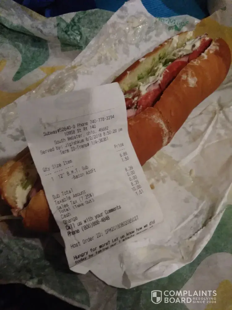 I went in subway june 10, 2018 and 8:40pm on lincoln highway in Lynwood. They were closing at 9 and didn't want to serve me. After they decided to serve me and I left my sandwich was terrible half the sandwich was only lettuce and tomato. This was my worse experience ever, I would like to be compensated