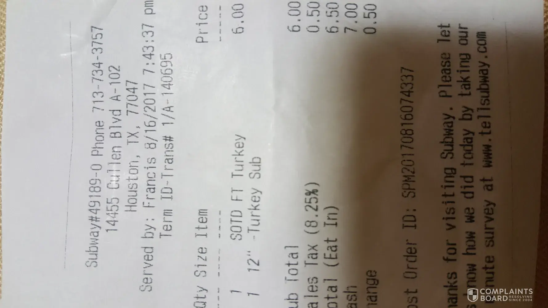 I ordered a foot long sandwich and handed $9 to her and she said I gave her $8 she wouldn't admit to it and asked if I had 57 cents I was thinking she'd give me back a dollar didn't happen so ill do business elsewhere ! Disgusted..Thursday June 7 at 5:00