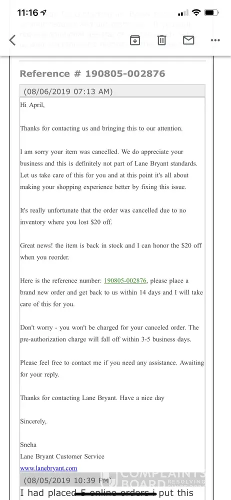Please reconsider so I can continue shopping with your store. I really don't want to take my business elsewhere but out of principle I will. Word of mouth goes a long ways and I'd love to share that Lane Bryant stood by its customer