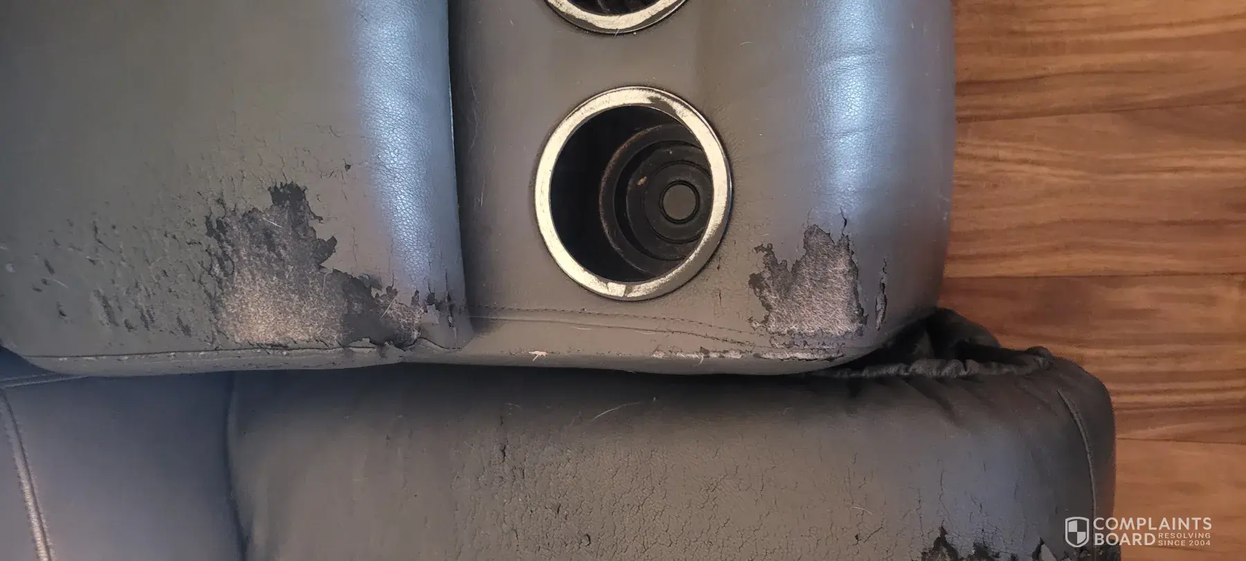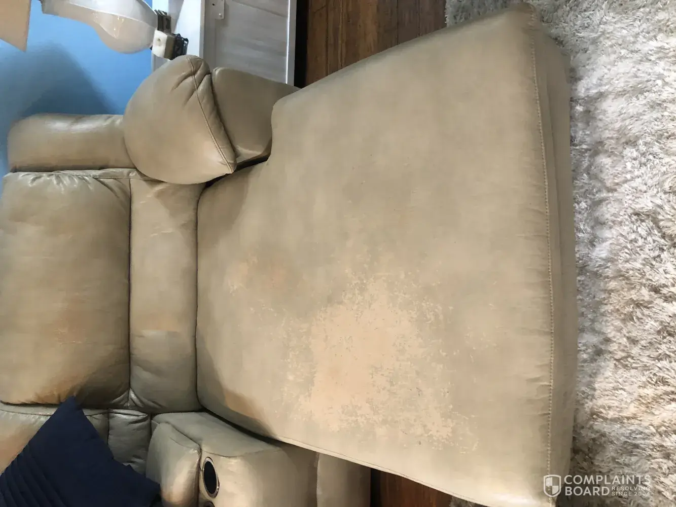 Love seat was delivered on 12-23-2019 purchased from classy home model number50280-BR-63 2021 October item is peeling nothing has been done I live alone no pets Or children this love seat is now