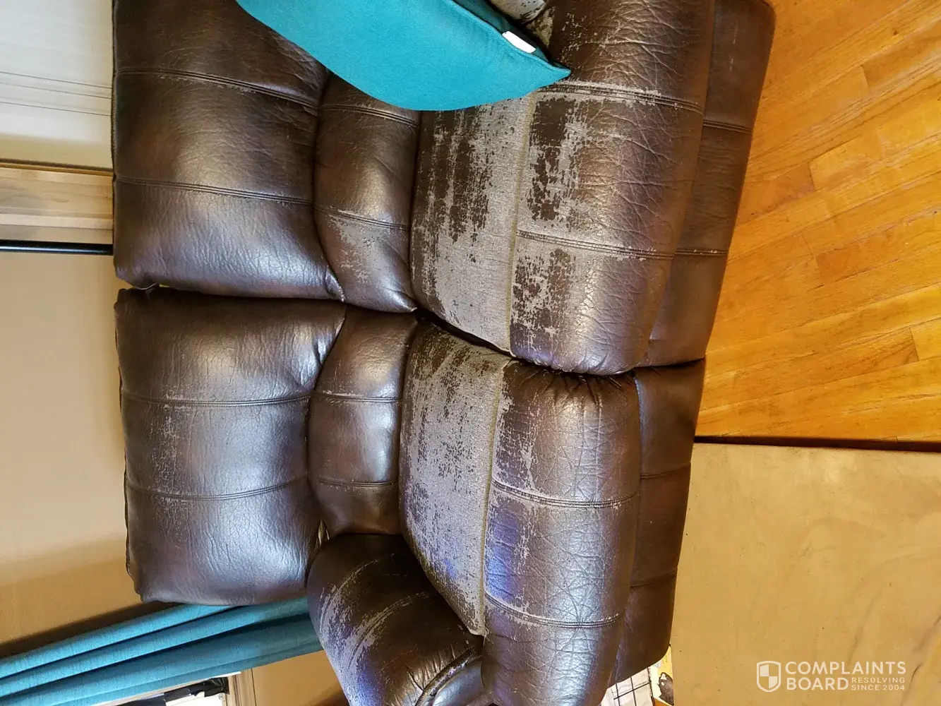 I bought a Simmons couch less than two years ago and the material is peeling off. It supposed to be leather according to the brochure, but its not! Its more like pleather than has hardly ever been sat on. According to the brochure if their is any excessive soiling, improper cleaning, ect will void the warrenty. None of the above has been done to this chair and i deserve a full refund because this is false adsvertisment.