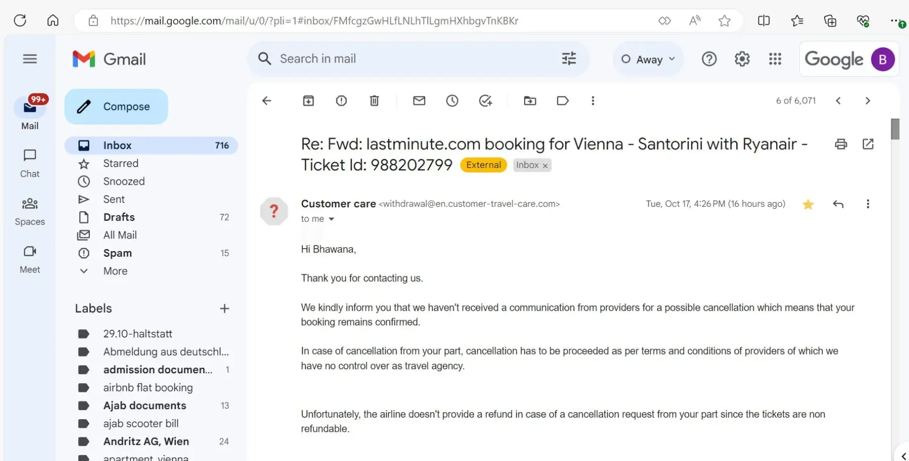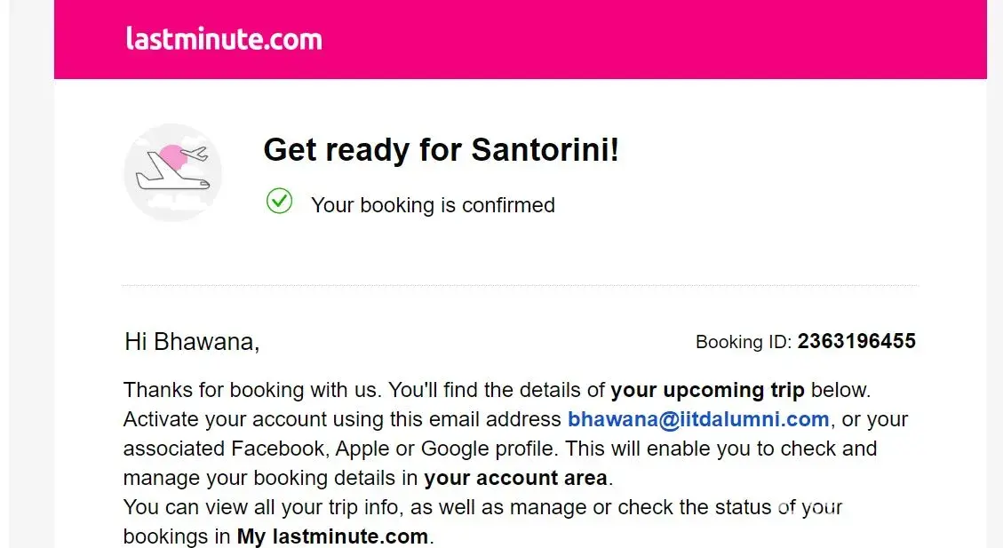 On 26th July, Lastminute.com emailed me stating: