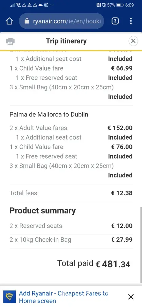 The return journey was just as stressful - yet again I had to keep calling and e-mailing you as we didn't receive our boarding passes - which is a joke as on your 'App' it says you will receive your boarding passes 20 hours before you depart - we certainly didn't. I called about 10 times asking for help - no assistance was given and then when we were about 5 hours away from our departure time one of your staff members told me that they couldn't do the 'easy check-in' that I had paid extra for and we would have to check in ourselves but we would receive 9 Euro's refund! Because of your lack of assistance, we couldn't complete our passenger locator forms prior to leaving our hotel - we had to do everything at the check in desk which was so stressful.