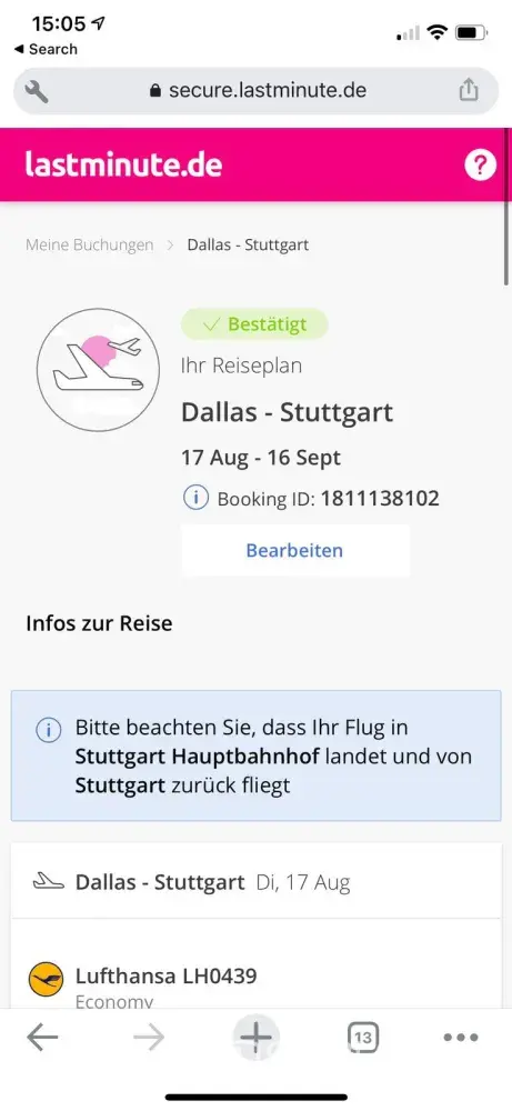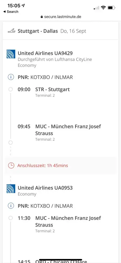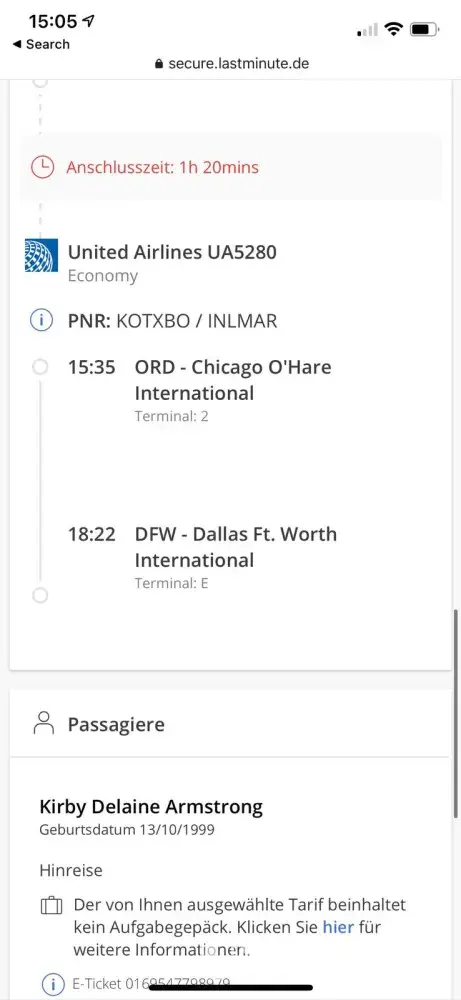 My name is Kirby Armstrong, I had a return flight booked for 16th of September 2021 from Germany to Dallas over Munich and Chicago (booking ID:[protected]), however the airline wasn't able to find ANY of my flights in the system. Due to this I wasn't able to board the flights. Customer service of lastminute and the airline both blamed each other, with last minute saying they cannot locate my booking anymore either. I can still access my booking on the last minute website and have proof of payment and confirmation mails. I have not gotten any support with refund, compensation or finding a new flight.