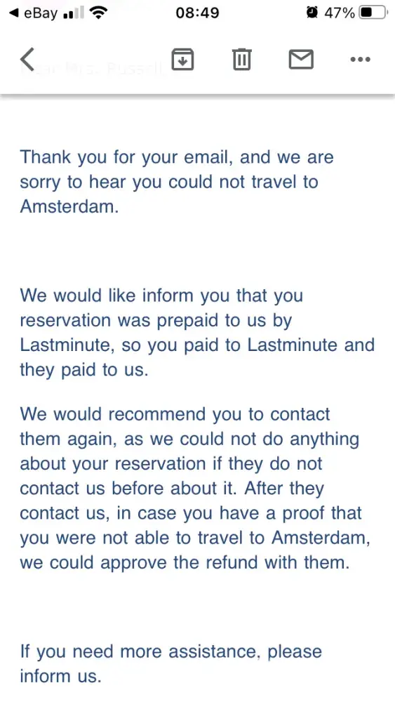 Since then I have phoned Lastminute.com 7 times and have had no response at all, no phone call, email or refund.