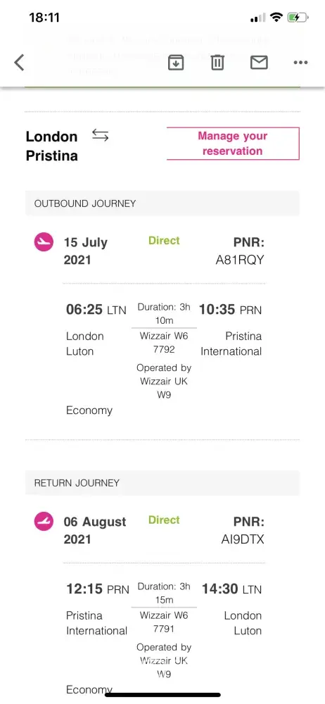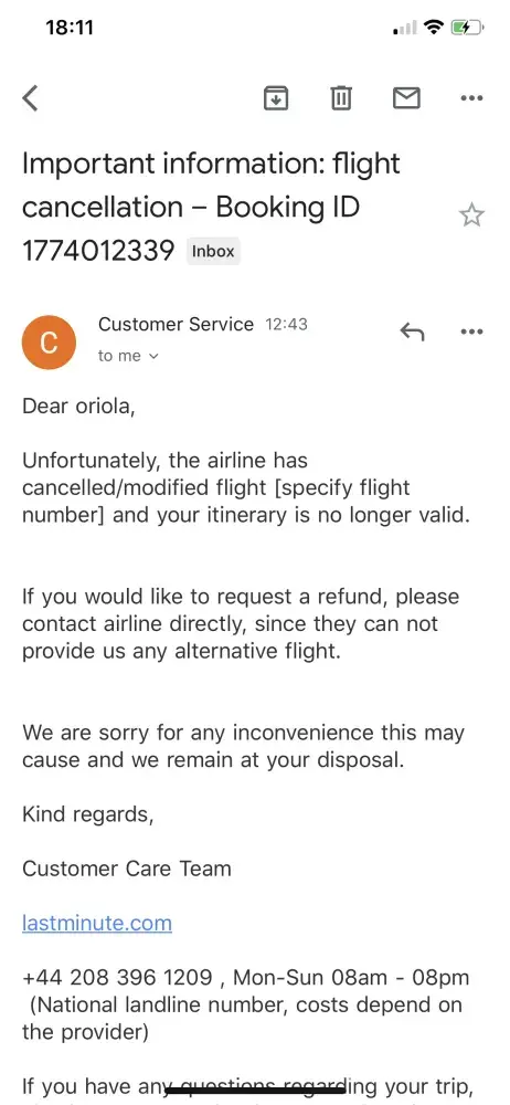 I had booked a ticket with lastminute.com to fly back to London on 06 August 2021 at 12:15, from Pristina International Airport in Kosovo. Booking ID [protected].