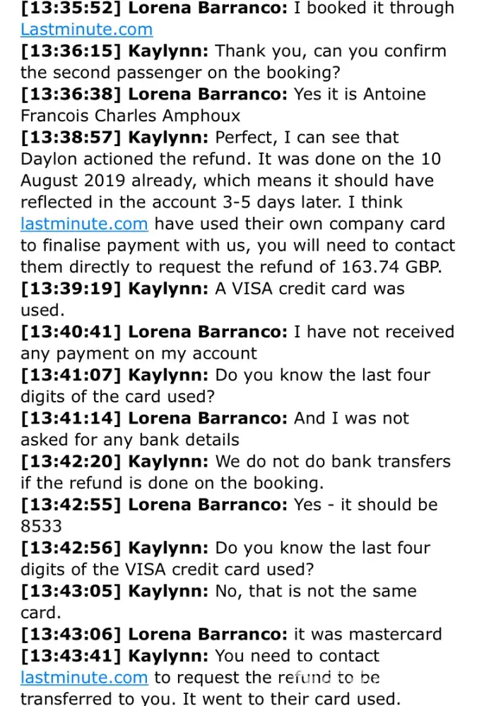 Finally I contacted lastminute and explained what I had been going on and the agent told me he would look into it but it could take a week or so before LastMinute would contact me.