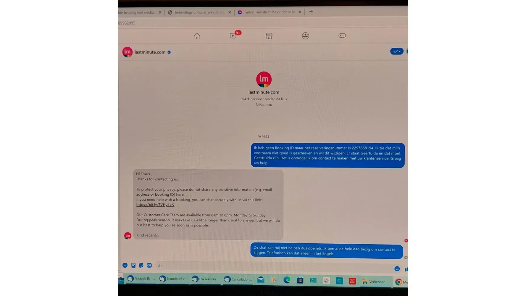 On March 2, 2023 we booked a trip through Booking.com. We were linked to Lastminute.com but we thought this was part of Booking.com because I was also logged in there. An hour after booking I saw a mistake in my first name and I wanted to change it immediately.